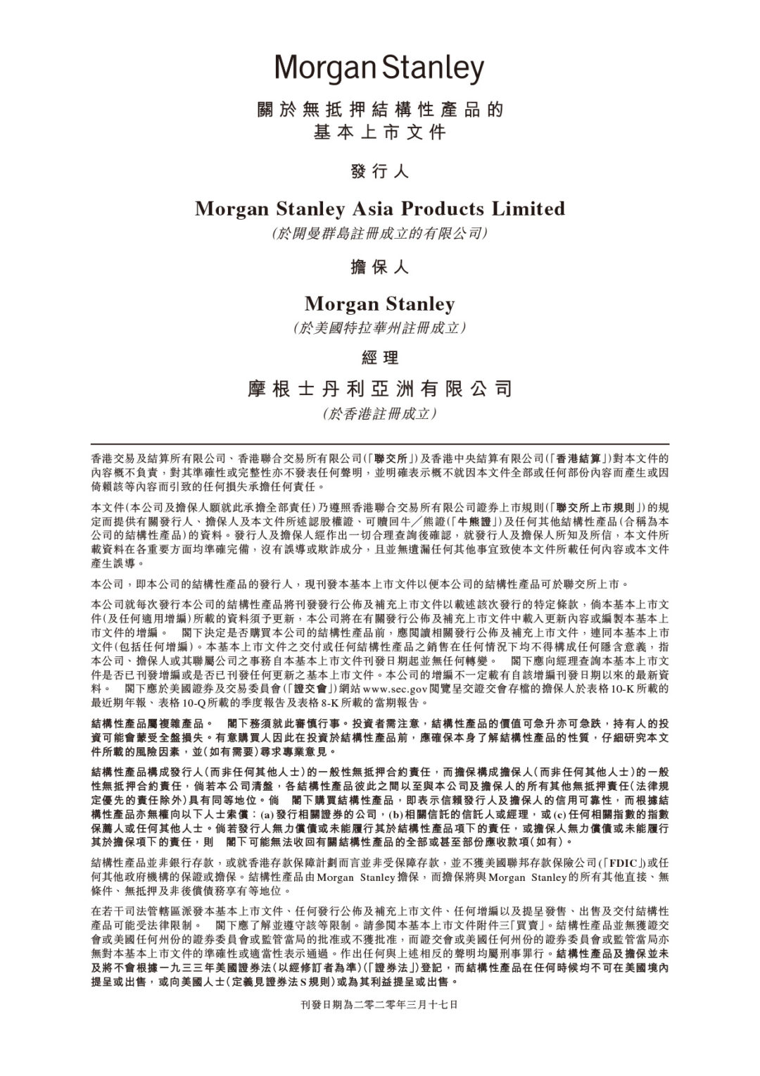 Morgan Stanley Asia Products Limited 結構性產品 Skills Posted on 4 5 月, 2020 ← Morgan Stanley Asia Products Limited 瑞士銀行 →